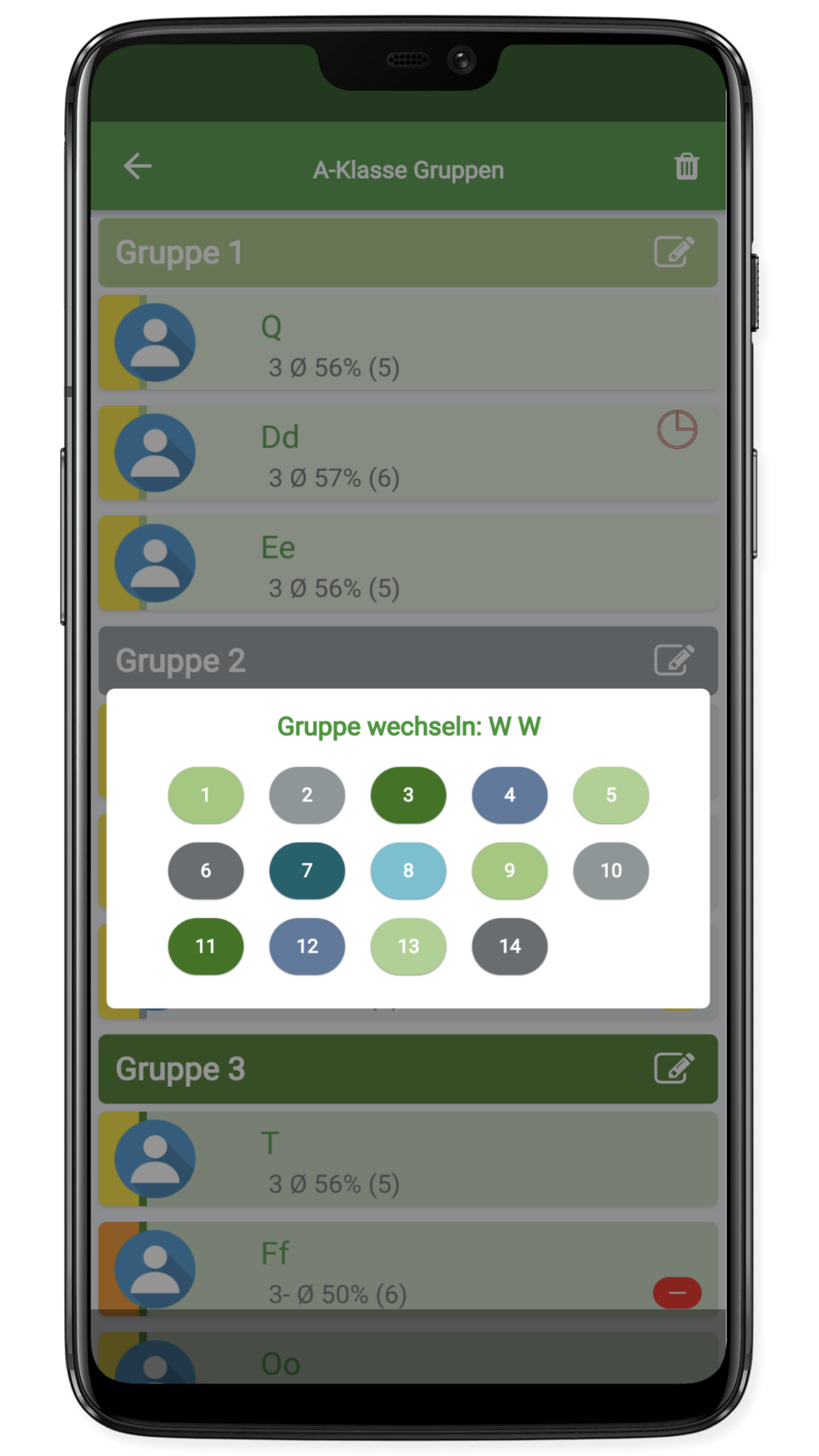Ein großes Thema und auch leicht "umzusetzen". Einfach länger auf einen Schülernamen drücken und die neue Gruppe wählen.
